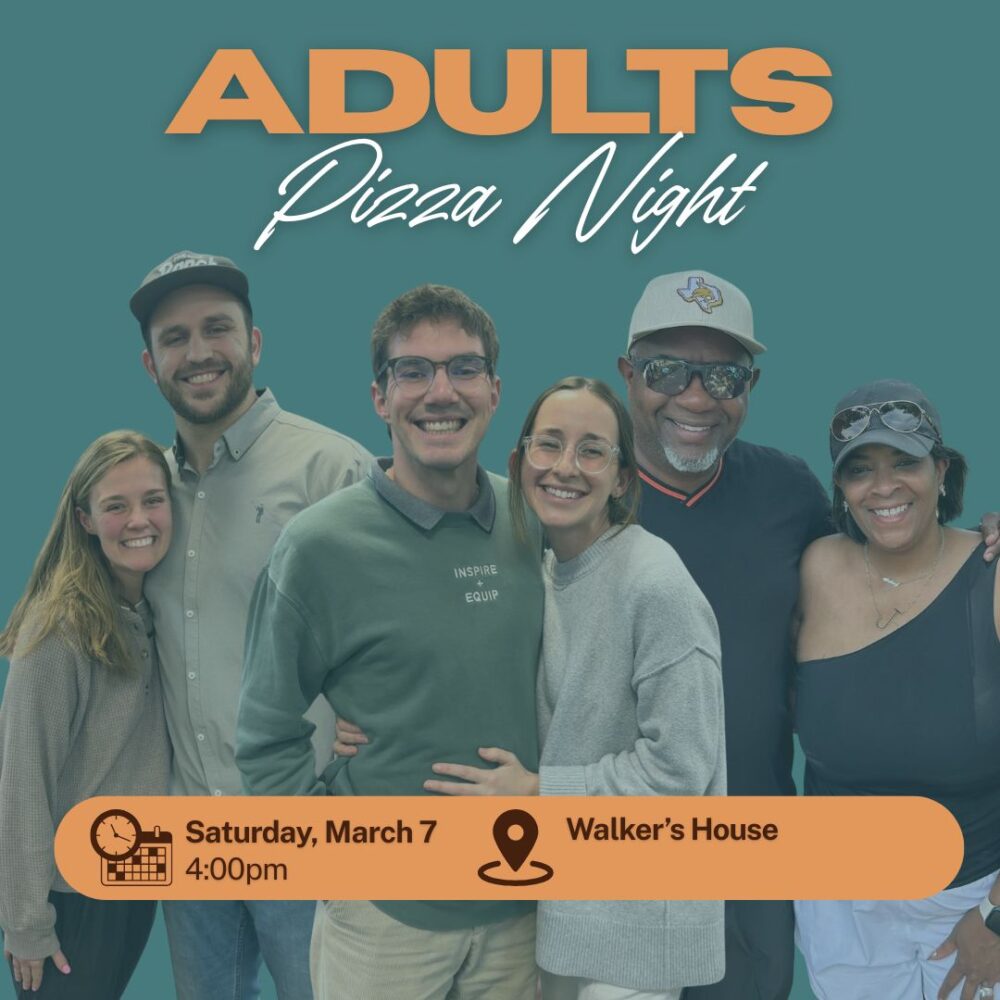 Adults, come enjoy an evening out! We’ll meet at the Walker’s home (you’ll receive the address upon registration) on March 7th at 4 PM for a lovely evening of fellowship and Pizza!