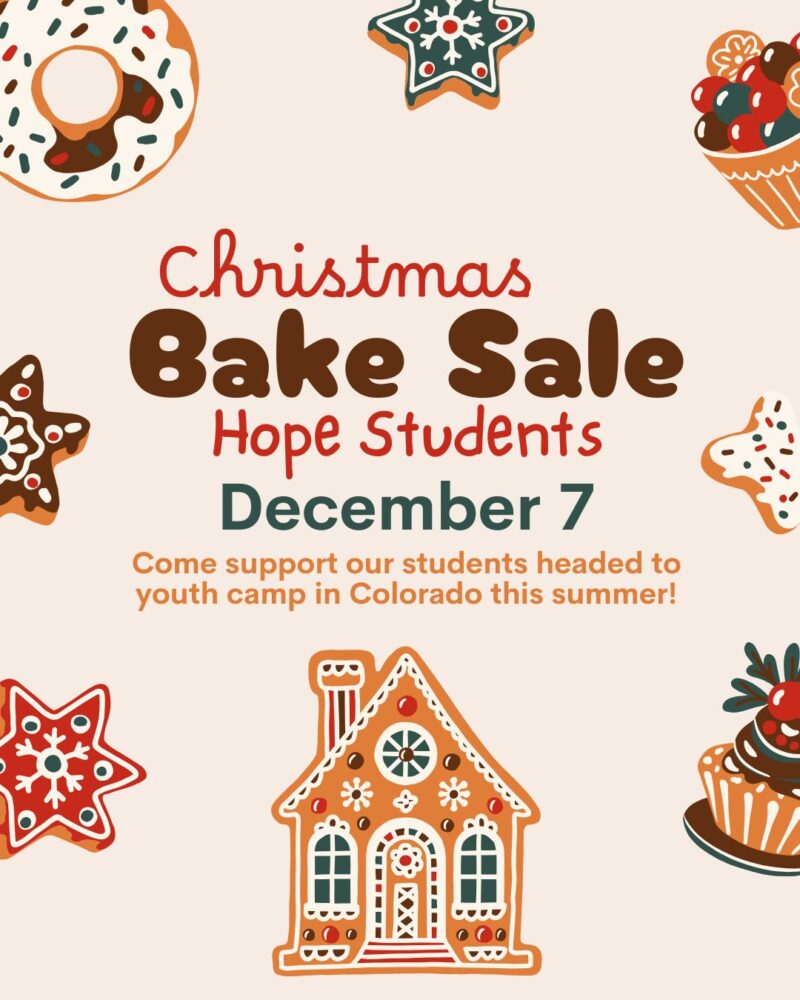 Our students are raising funds to go to Colorado for camp this summer. Be sure to stop by the foyer and support their bake sale on December 7th!