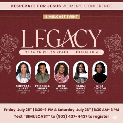 Join us for a Simulcast at the Hope Campus of the “Desperate For Jesus” Women’s Conference on July 25 from 6:30 PM-8:30 PM & July 26 from 8:30 AM-3PM!