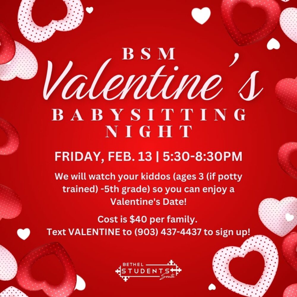 Help support the South Student Ministry through a Valentine’s Babysitting Night!