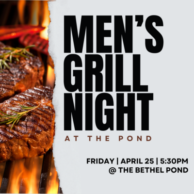Men, join us at the South Pond the Friday after Easter, April 25th at 5:30 PM for a Grill Night. Feel free to bring your sons. We will provide the grill, plastic dinnerware, and refreshments. You bring the meat and sides as well as a lawn chair, fishing pole, and any lawn games you want to play. After dinner, we will gather around the fire and listen to a testimony from one of our own Bethel men. To register text “GRILLNIGHT” to (903) 437-4437, or CLICK HERE.