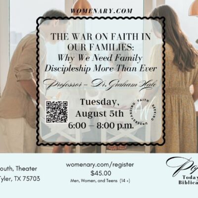 Are you concerned with the spiritual health of your family? You’re not alone. Bethel is partnering with Womenary(link) to host a one-night pop-up class in the South Campus Theater On Tuesday, August 5th, from 6-8 pm. Dr. Graham Hale will teach “The War on Faith in Our Families: Why We Need Family Discipleship More Than Ever.” This class is intended for men, women, and teens 14+ and costs $45 to attend. Register at womenary.com/register